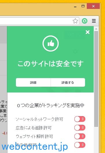 サイトの評価が表示されます。右上の「×」をクリックすると元に戻ります。