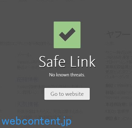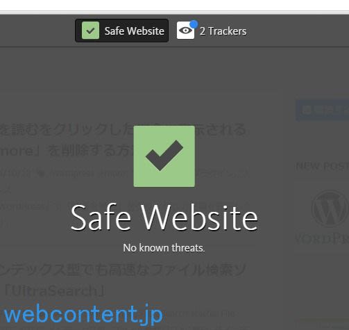 左側をクリックするとサイト内の脅威に関する情報が表示されます。「Safe Website」なら安全なサイトとなります。