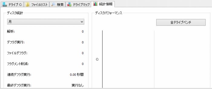 Defragglerはディスクベンチマーク機能が備わっているため、デフラグ前とデフラグ後の数値的な変化を知ることができます。デフラグに関係するベンチマーク内容となっているため、サードパーティ製より分かりやすくなっています。