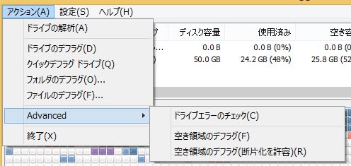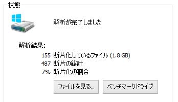 しかし、「空き領域のデフラグ」は別です。SSDでも長年の利用で、空き領域の断片化による速度低下をまねくためです。
