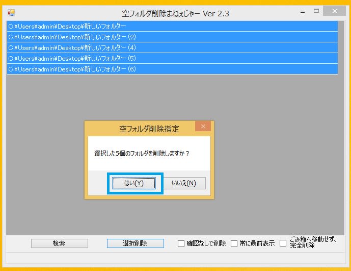空フォルダ削除まねぇじゃーは見つかった空フォルダを一括削除することができます。いちいちクリックして削除をしなくても簡単にすべて削除することが可能というわけです。