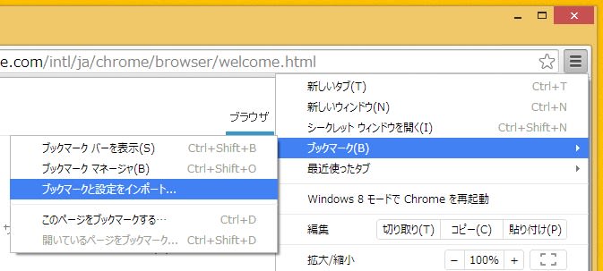 Google Chromeのブックマークは違うソフトウェア(Internet Explorer)からコピー(インポート)することが可能です。