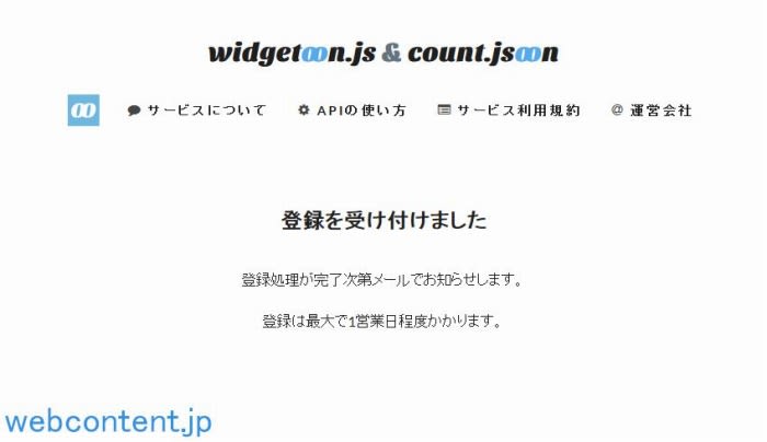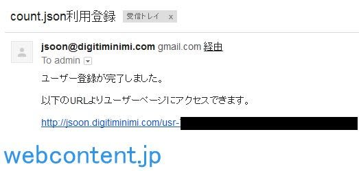 widgetoon.js & count.jsoonにサイトの登録に完了すると、登録したメールアドレスに専用ユーザページのURLが届きます。