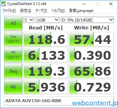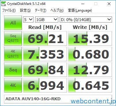購入したのは16GBのAUV140-16Gで、速度は画像の通りUSB3.0対応のUSBメモリとしては遅い部類になります。約700円とコスパはあまり良くありませんが、永久保証がついています。