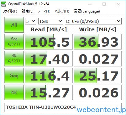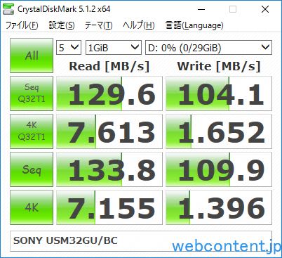購入したのは32GBのUSM32GUで、海外パッケージ品のため保証が一年で中国製でした。画像を通りシーケンシャルライトが 100MB/s を超える最速USBメモリで、約1600円と少し高額ですが価格以上の速度が出ていると思います。