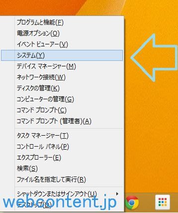デスクトップ画面で「Win」キーと「X」キーを同時に押し、「システム」をクリックします。