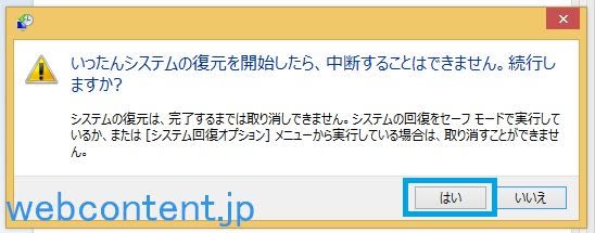 Windows8.1のパソコンを正常に動作していた時の状態まで復元する「コンピュータの復元」に関する内容