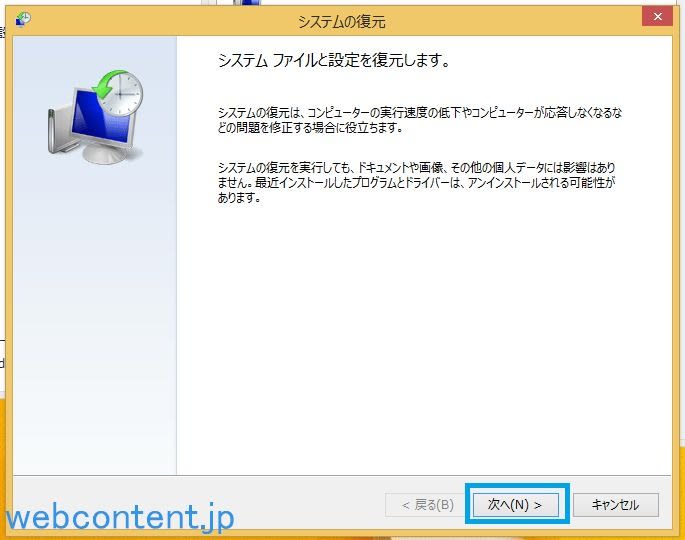 不具合のある現在の状態のパソコンを、正常に動作していた時まで復元するWindowsの標準搭載機能です。