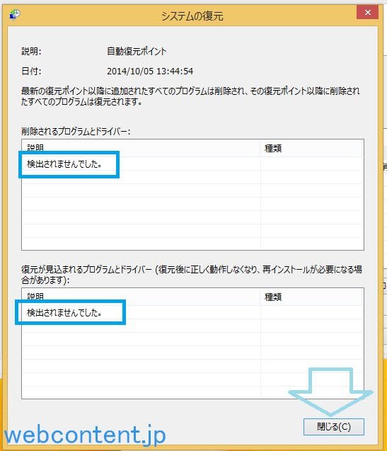 ただ、システムの復元する上で影響するソフトは表示されるので「復元したらソフトが消えた」といった自体は発生しないようになっています。
