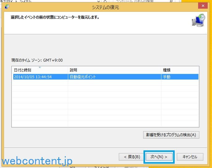 右下の「影響を受けるプログラムの検出」をクリックします。(飛ばしても構いません)